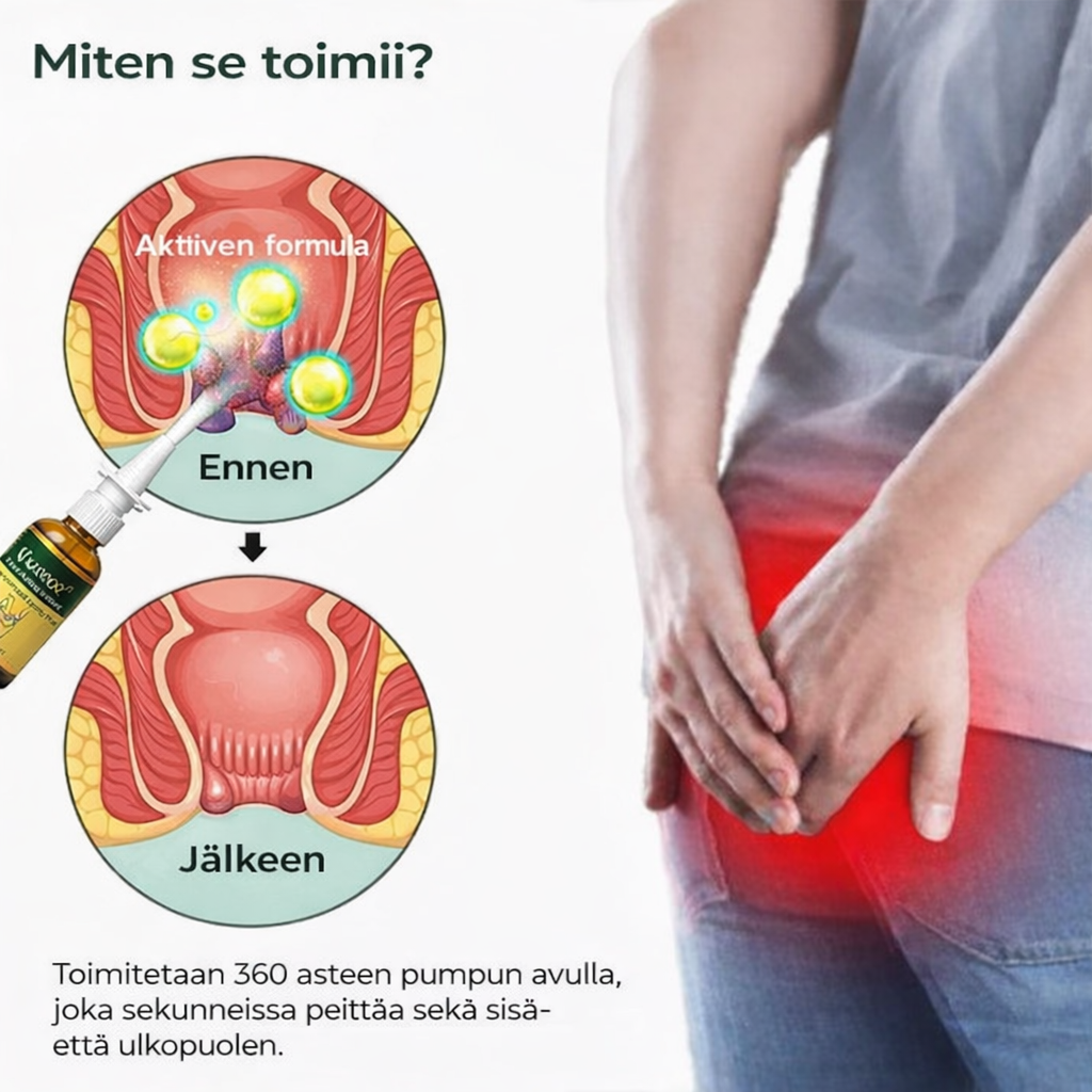 Nopeavaikutteinen peräaukon suihke peräpukamiin