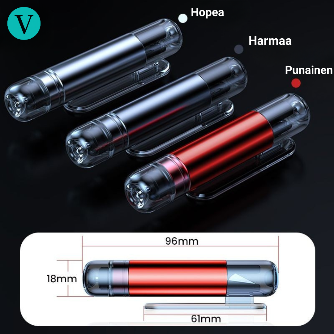 Kompakti ja kevyt: Mahtuu helposti hansikaslokeroon, keskikonsoliin tai ovitaskuun